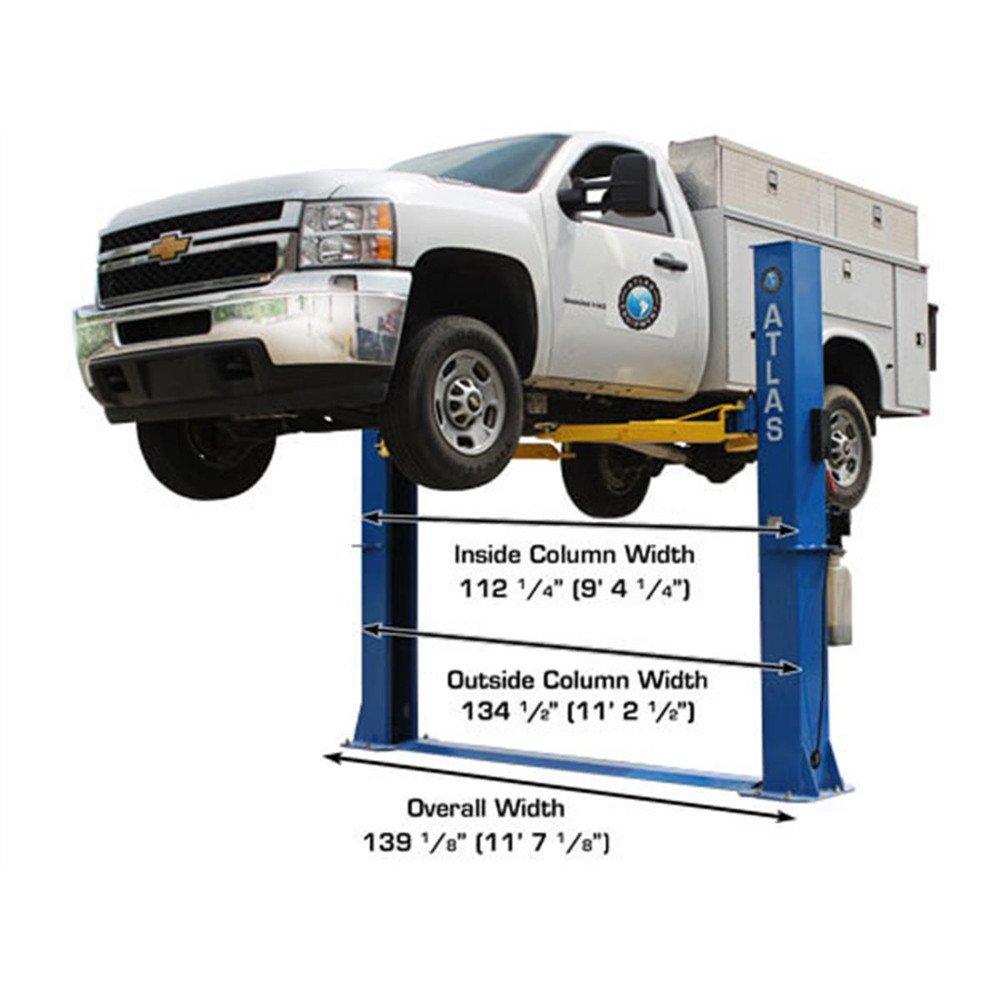 The Atlas® BP10000X commercial grade 2 post baseplate lift is built for those customers who want to lift heavy vehicles in a low ceiling garage. The Atlas® BP10000X incorporates the popular single point lock release columns have a middle welded support gusset that adds extra strength to the oversized columns. If you need to lift a one ton dually or a Smart Car and only have an 11 foot ceiling, this is the lift for your shop.