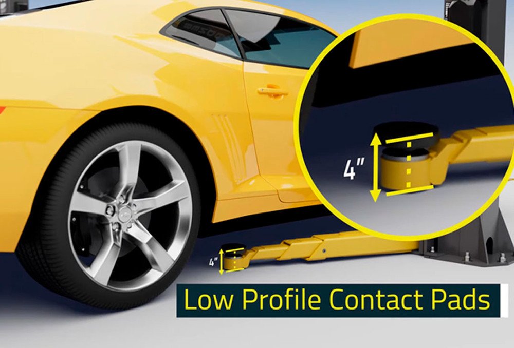 Our exclusive Low-Pro™ swing arms feature telescoping channels which have a shorter profile and a dropped-end pad receiver resulting in better serviceability on lowered chassis-height vehicles. They access hard-to-reach lift points with less hindrance providing increased versatility and less chance of damage to vehicle side skirts, running boards or ground effects. Varying height stackable adapters combined with two stage spin-up screw pads provide greater vertical pad placement for precise and safe vehicle support.