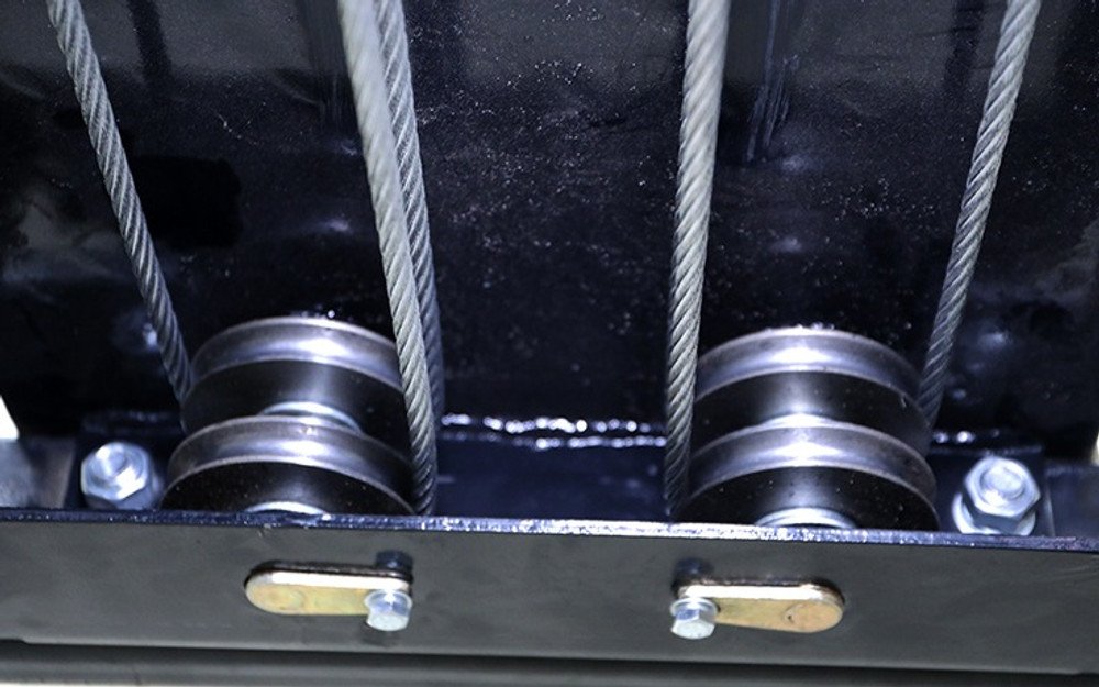 Every car lift comes with four lifting wire ropes made from superior-grade stainless steel, and each wire rope is rated to handle 14,000 lbs. This means the combined wire rope rating is 700% of the lift’s rated capacity.
