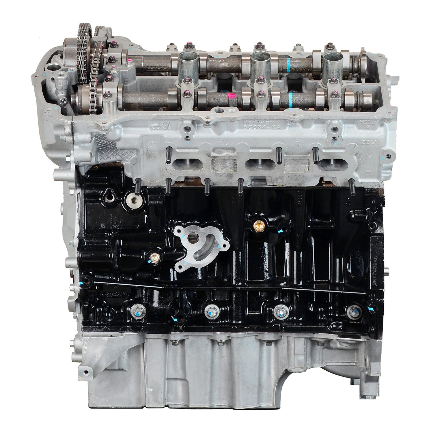 - Machining and New Parts – Deck surfaces are CNC machined and new parts are added. New parts inlcude bearings, pistons, rings, lifters, oil pump, gaskets, Viton™ valve seals, freeze plugs, galley plugs and either a new timing chain (with new tensioners) or a new timing belt (with new tensioner). If an engine has a timing-driven water pump, a new pump is installed.