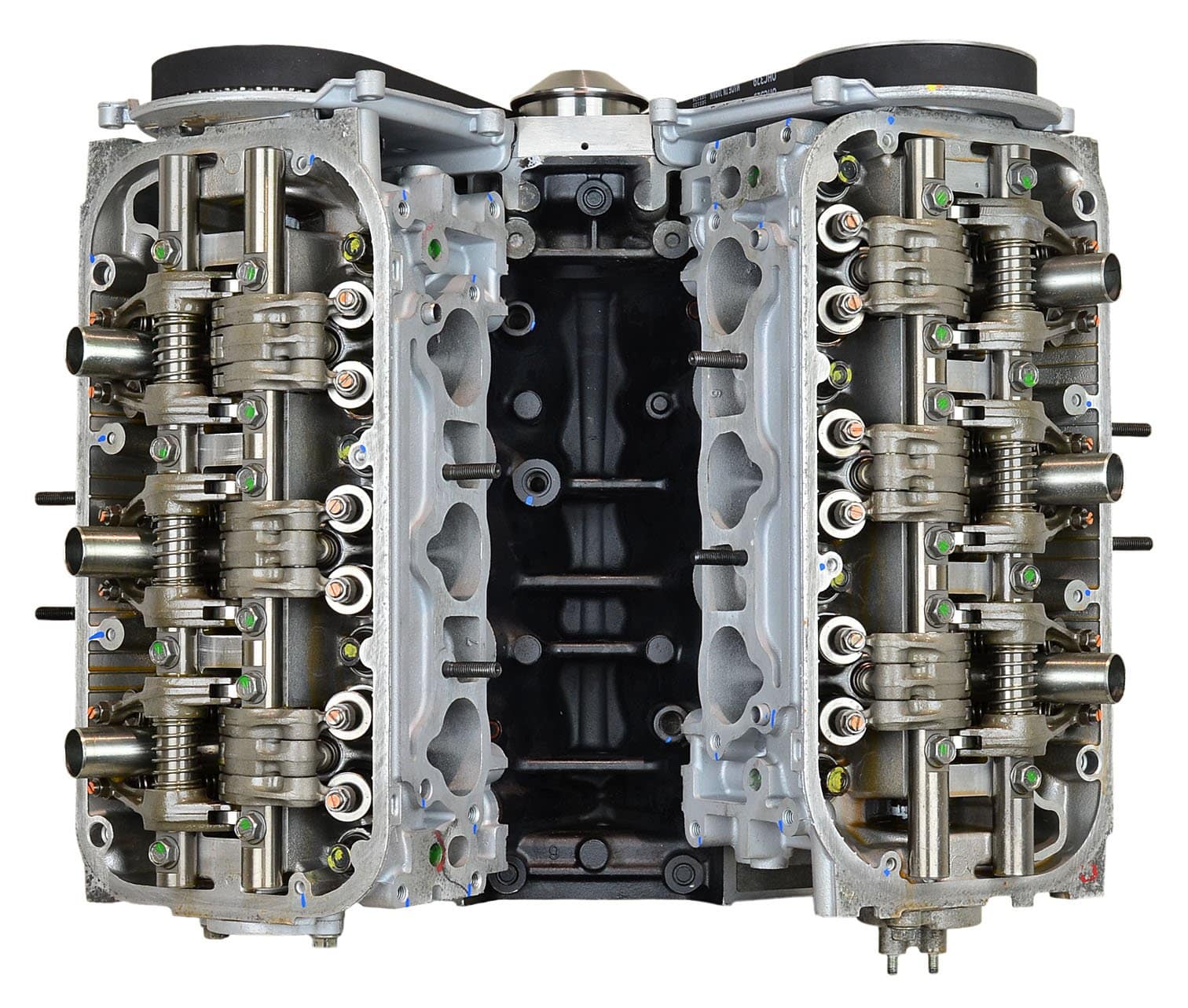 • Machining and New Parts – Deck surfaces are CNC machined and new parts are added. New parts inlcude bearings, pistons, rings, lifters, oil pump, gaskets, Viton™ valve seals, freeze plugs, galley plugs and either a new timing chain (with new tensioners) or a new timing belt (with new tensioner). If an engine has a timing-driven water pump, a new pump is installed.