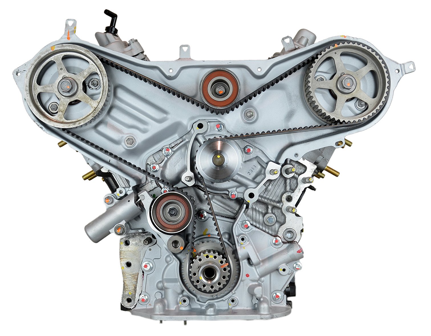 - Machining and New Parts – Deck surfaces are CNC machined and new parts are added. New parts inlcude bearings, pistons, rings, lifters, oil pump, gaskets, Viton™ valve seals, freeze plugs, galley plugs and either a new timing chain (with new tensioners) or a new timing belt (with new tensioner). If an engine has a timing-driven water pump, a new pump is installed.